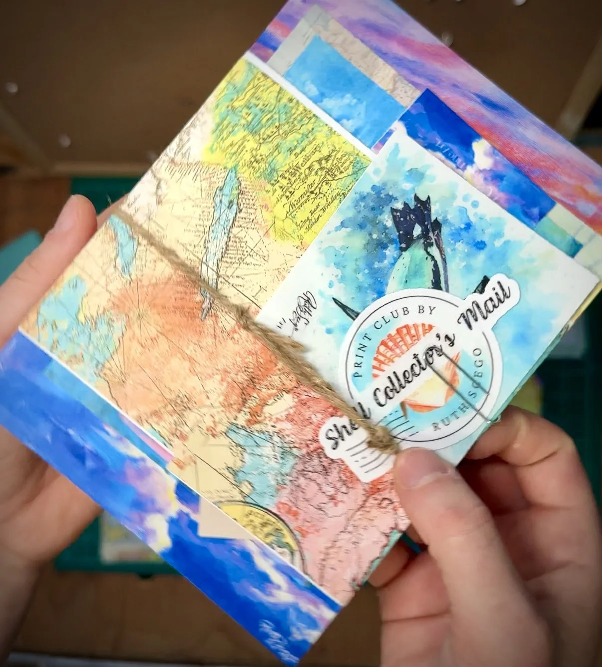 Accompanying this letter is a mini art print of a penguin pair in the sunset over a frozen landscape, along with a bookmark, postcard, challenge and journal prompt, sticker, and of course, themed scrapbook paper and a sailor’s knot of the month.